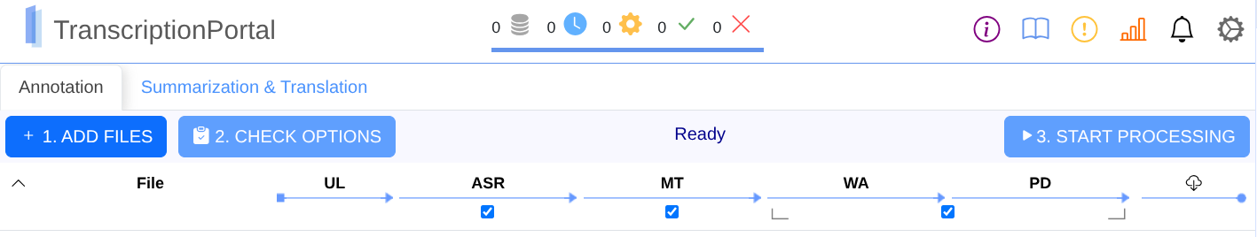 Go to the TranscriptionPortal website, select one or more sound files, upload them, select the language and eventually a Language Model, start the recognition and once ready, download the automatically generated transcription(s). Currently, the audio-files must be formatted as mono or stereo wav-files, but in the near future the portal itself will transform a range of audio-file formats into the required (wav-) format.